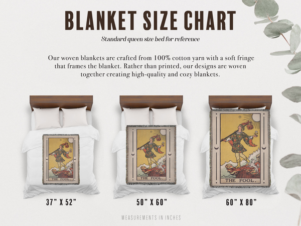 This intricately woven blanket captures the timeless symbolism of The Fool card, making it a meaningful addition to any spiritual or bohemian-inspired space. Whether draped over a couch, used as a wall tapestry, or wrapped around you for comfort, it brings both warmth and intention into your home.